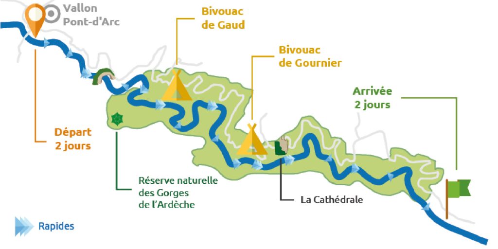 Plus de Détails sur la descente de l'Ardèche 32km en 2 jours - formule nature :