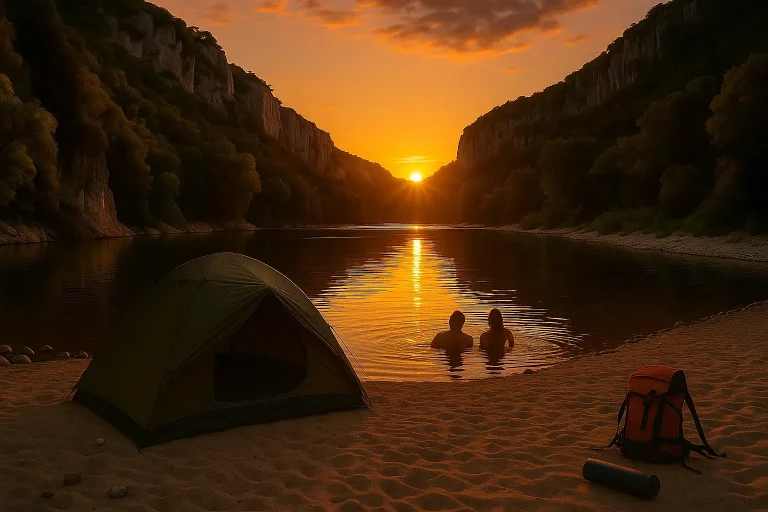 🌙 Vivez une aventure grandeur nature avec la descente de l’Ardèche 32 km sur 2 jours et une nuit en bivouac au cœur des gorges !